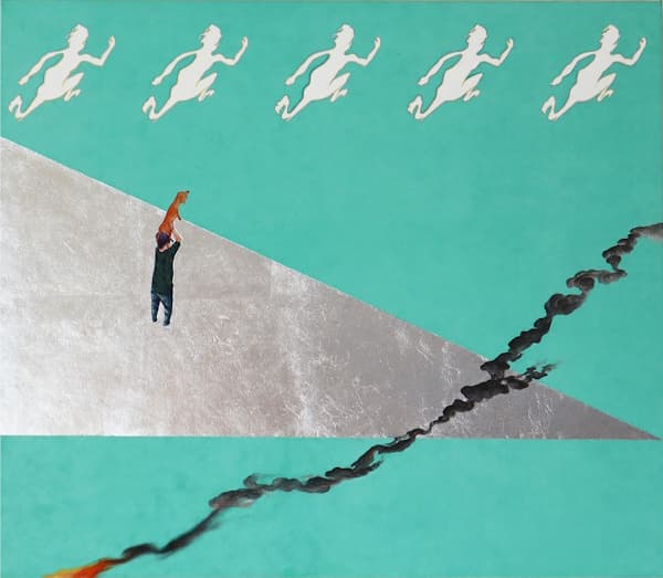 偶然人の形を成した水中に落ちゆく墨の模様を撮影し、写真をもとに絵画で再構築した。人に見える瞬間は一瞬であり、次の瞬間にはただの淀みに変わり、やがて水中全体も透明から灰色一色となる。この一連の芸術的な瞬間を永遠に引き延ばすことで自分の描くべきものを見つけられたような感じがする。
