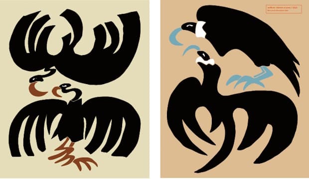 左:《migratory birds》 606×500mm 右:《condor 1》 606×500mm すべてacrylic on canvas