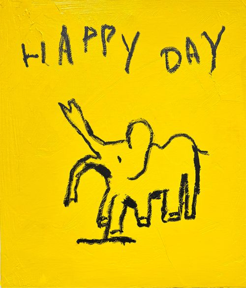 「happy day」 53×45.5cm、acrylic and oil stick on canvas 2025年