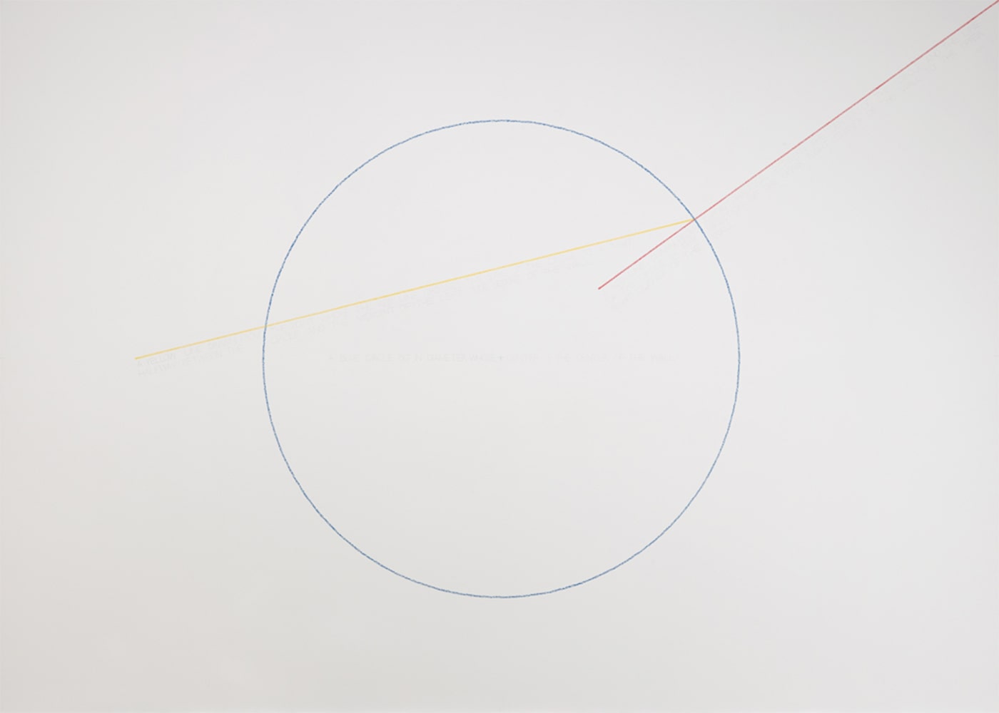 ソル・ルウィット《ウォール・ドローイング #283 青色の円、赤色の直線、黄色の直線の位置》初回展示1976 年 2017 年イェール大学美術館ウェストキャンパス・コレクションセンター(コネチカット州ウェストヘイブン)での展示 © 2025 The LeWitt Estate / Artists Rights Society (ARS), New York. Courtesy Paula Cooper Gallery.