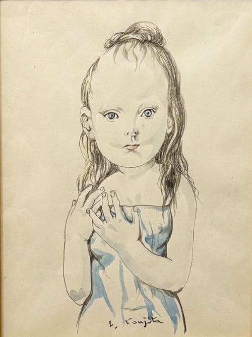 藤田 嗣治 「青い服の少女」23.8×18.5㎝ 水彩・東美鑑定評価機構鑑定書付