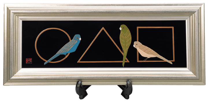 田崎 昭一郎 漆芸額「鸚哥蒔絵」11×37cm 額19×44cm