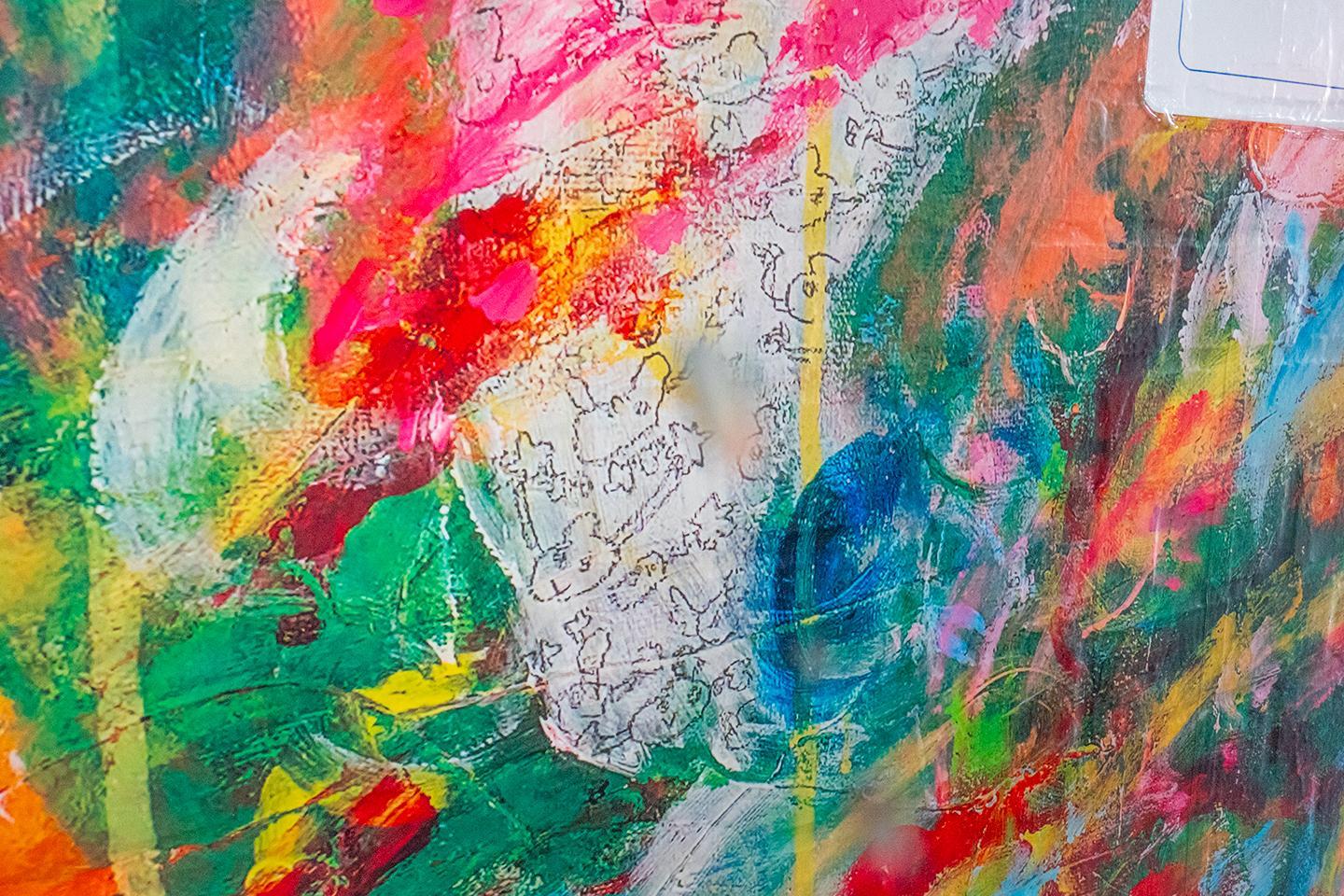 塚田:そういう系譜の中で捉えることもできる作品ですよ。つまり絵画を「行為する場」として捉えている。こういった身体的な痕跡もロッカクさんの作品の見どころです。