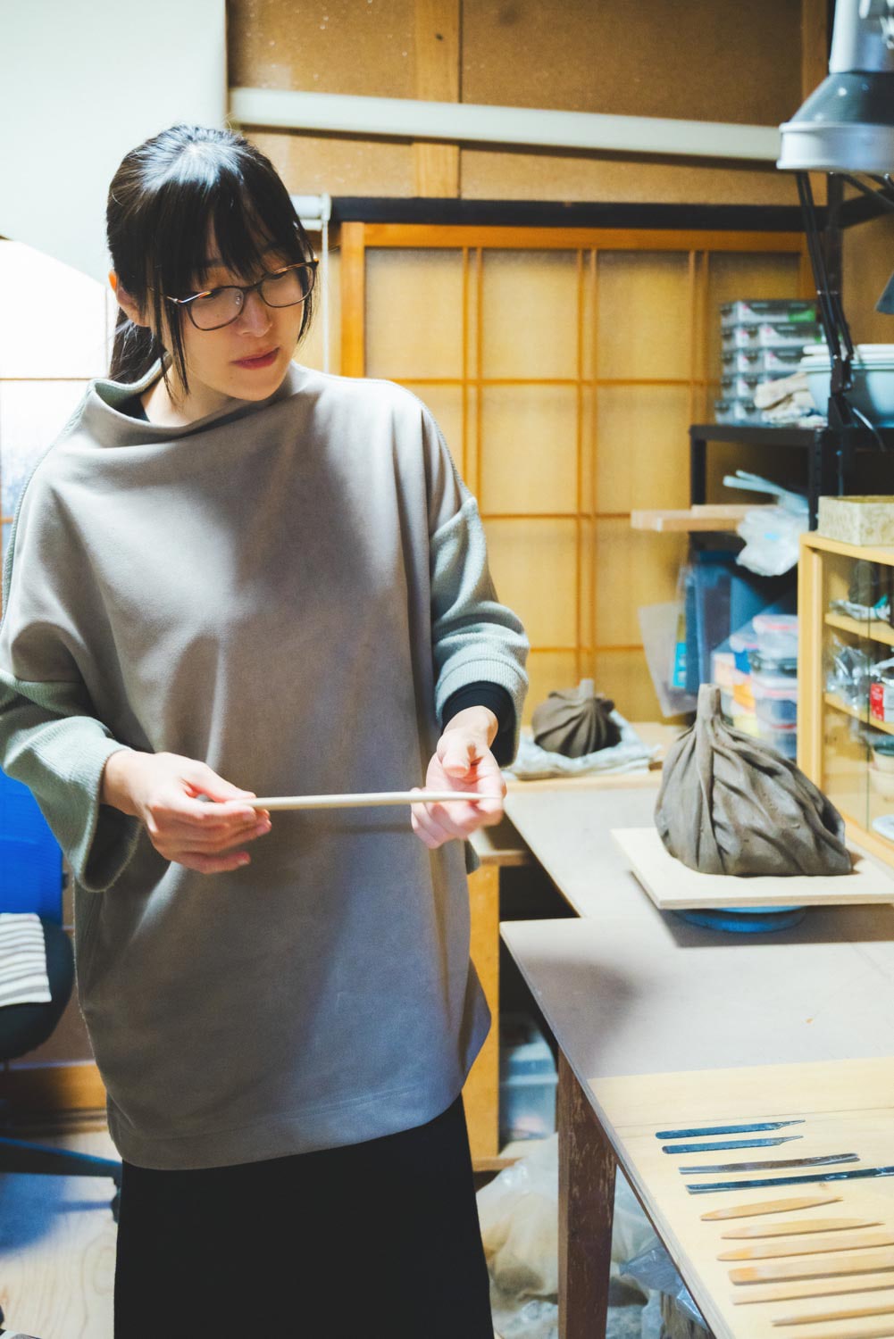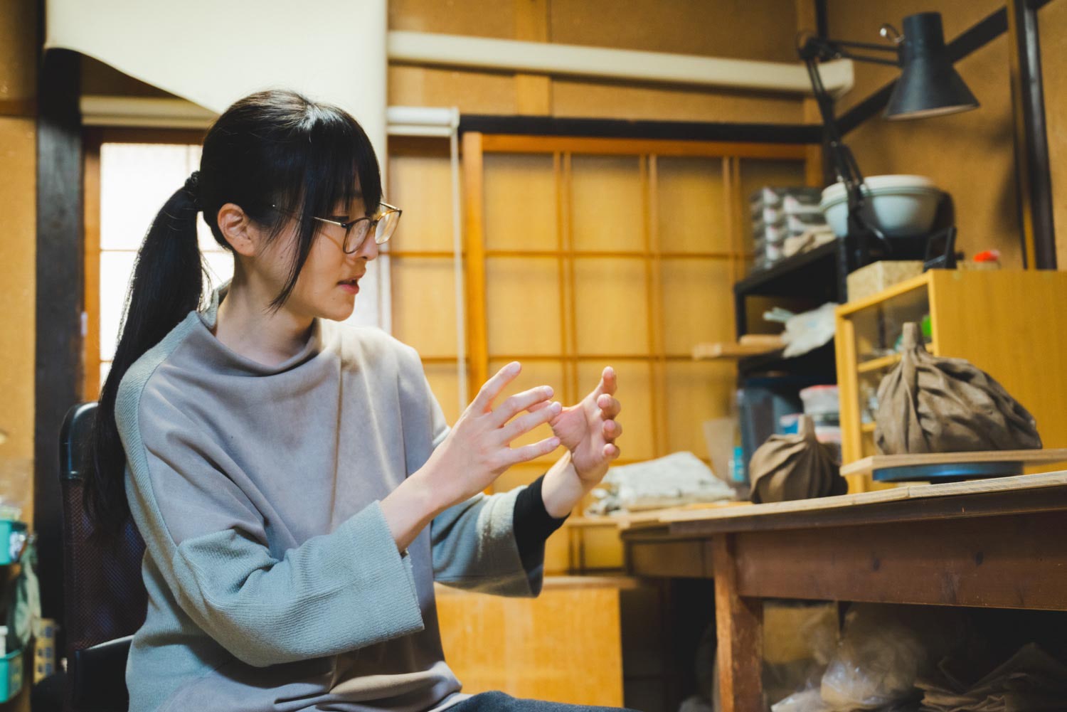 「学生時代に絵を始めてみたら、すごく楽しくて。どうせやるならトップまで行きたいと思い、美大を目指しました」と田中さんは振り返る。そうして入学した京都嵯峨芸術大学では油絵を専攻。しかし次第に、キャンバスと向き合うことに違和感を覚えるようになったという。「子どもの頃から絵が苦手で、やりたいイメージを平面に落とすのにすごく時間がかかるんです。そんな時に受講した『陶芸論』の授業で、作陶する作家の姿を目にして。素材と向き合って静かに作る、あの生き方をしてみたいと思ったんです」。それが、陶芸を始めるきっかけだった