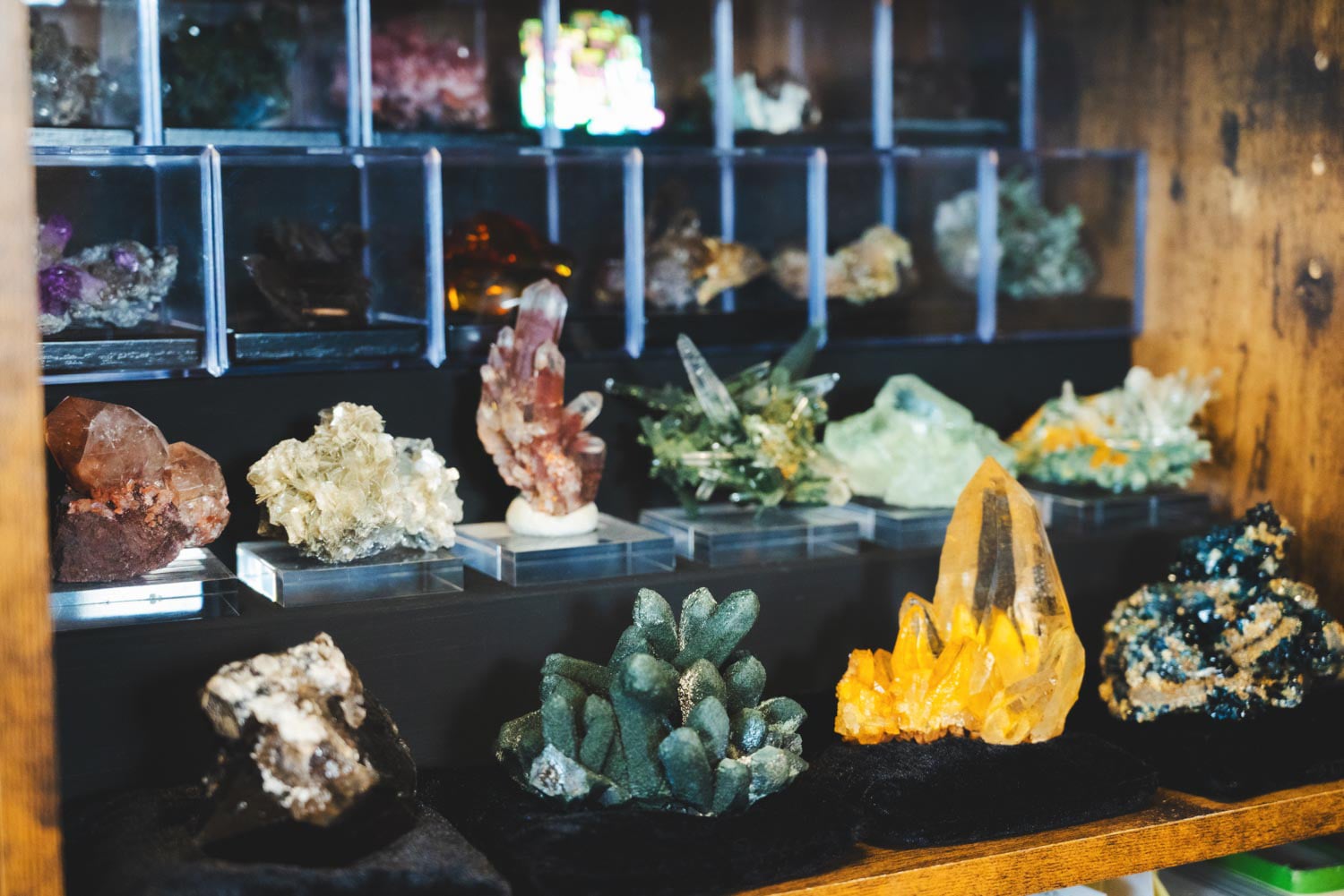 田中さんの鉱物コレクション。「鉱物って、自然の中でできた色の組み合わせなんですよね。黄色の中にもオレンジがあったり、下地にどんな色を入れるかで印象が変わったり。その相性を見るのが面白くて集めています」