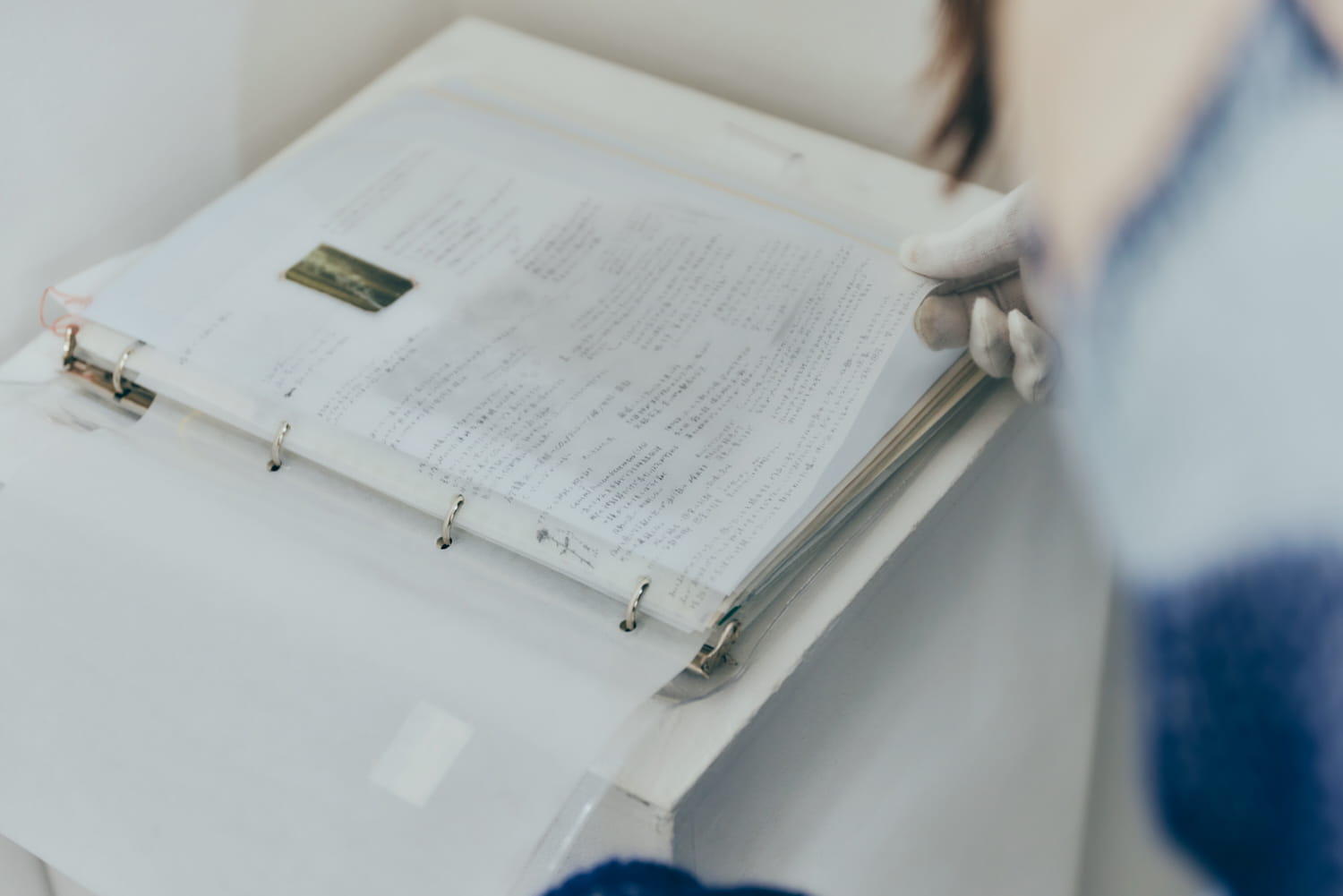 制作ノートが隅に置いてあった。ひらくと、びっしり書いてある。さまざまな紙に、さまざまな方法で。それは、たったひとりで作ったとは思えないような凄みがある。文献的なものから、日記のようなもの、生活のスケッチ。考え得る限りの、あらゆる方向から、たったひとつに向き合ったことがわかる。暗闇で手紙を読む。調べること、考えること、手を動かすこと、近づくこと、離れること、ピントを合わせること、ぼやかすこと、曖昧にすること、白と黒を分けること、言葉で考えること、感覚でとらえること。そのすべてが暗闇で手紙を読むための儀式であり、基本姿勢なのではないか、と勝手に思う。