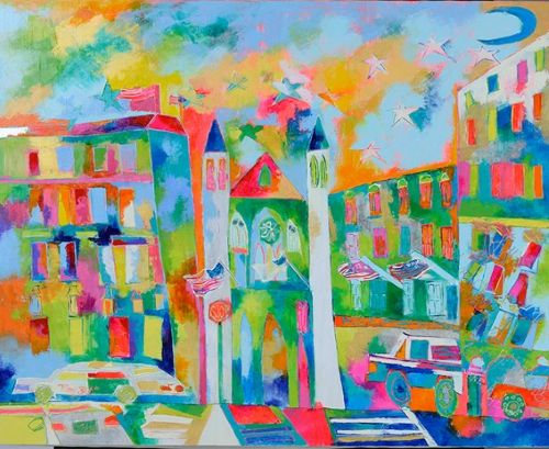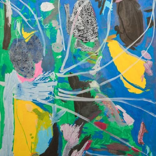 伊賀 敢男留「壁:語りかけてくる色」 キャンバスにアクリル絵具とオイルパステル F30号 72.7cm×91cm 2021年