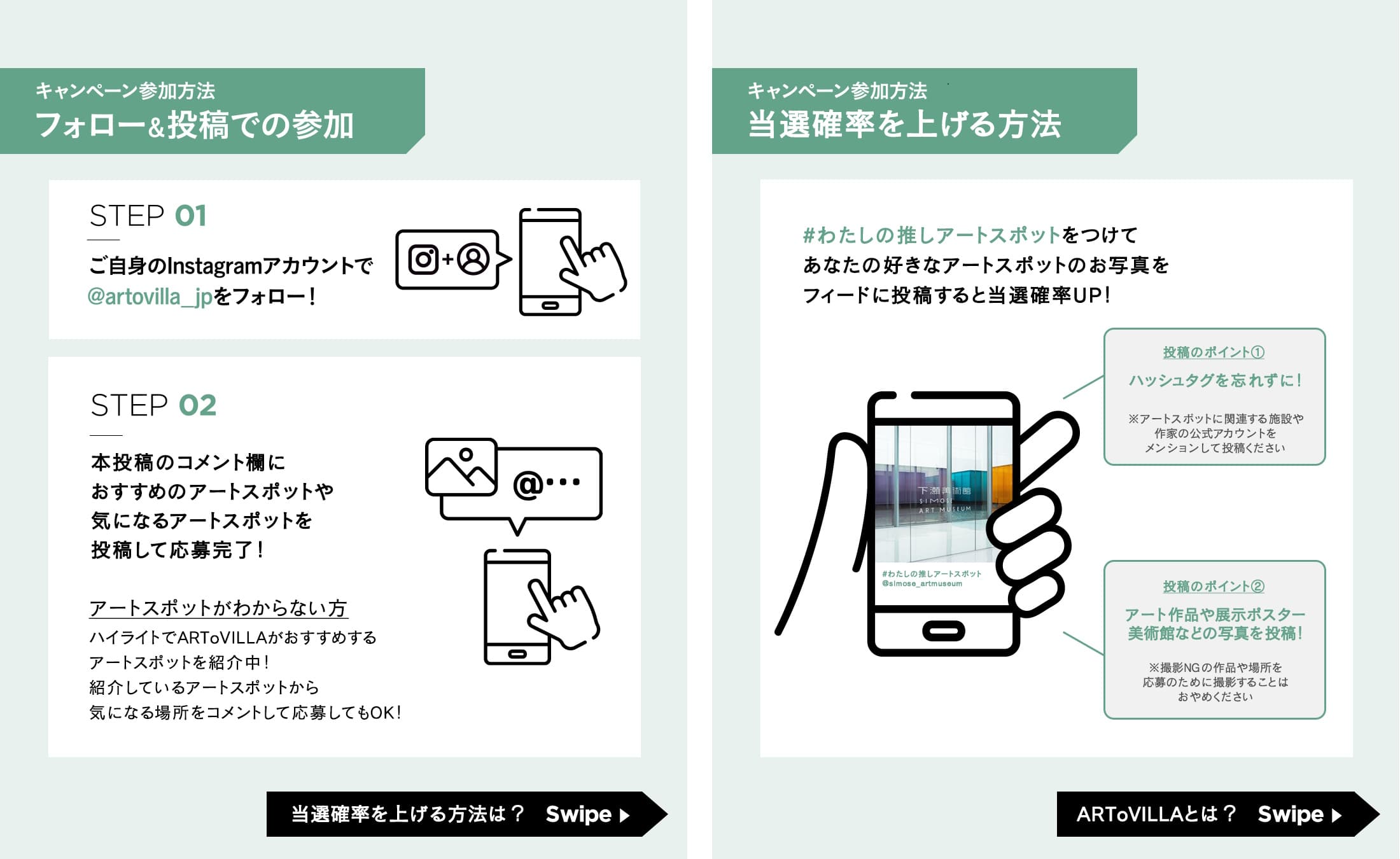 ※期間中にARToVILLA公式Instagramアカウントをフォローしている方が対象となります。