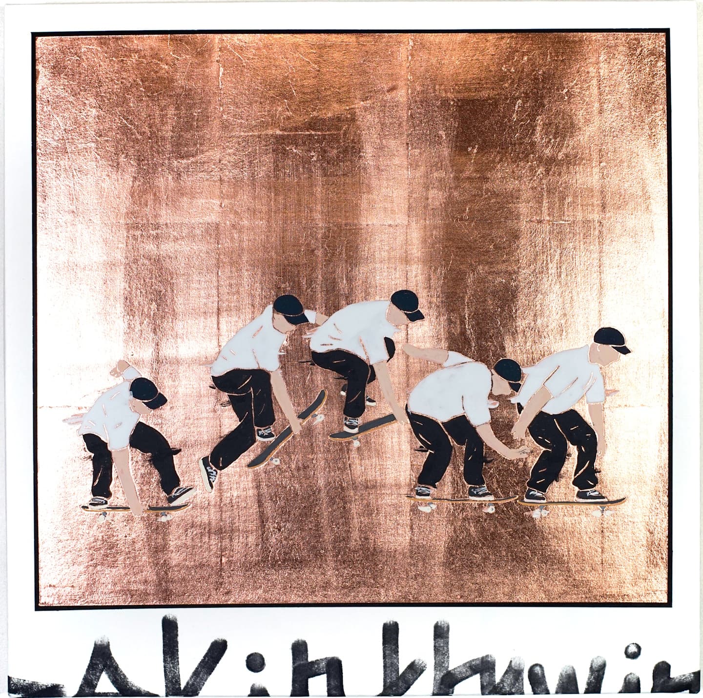 「be kind rewind #28」サイズ:455×455×50mm(S8号) 技法:顔料、銅箔、膠、和紙