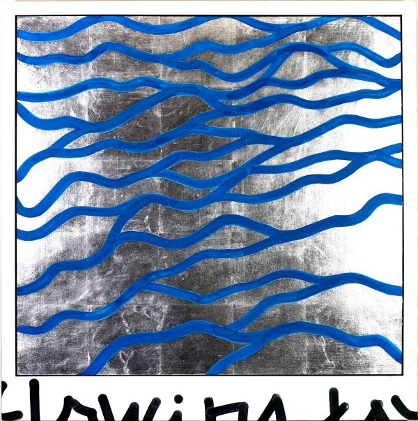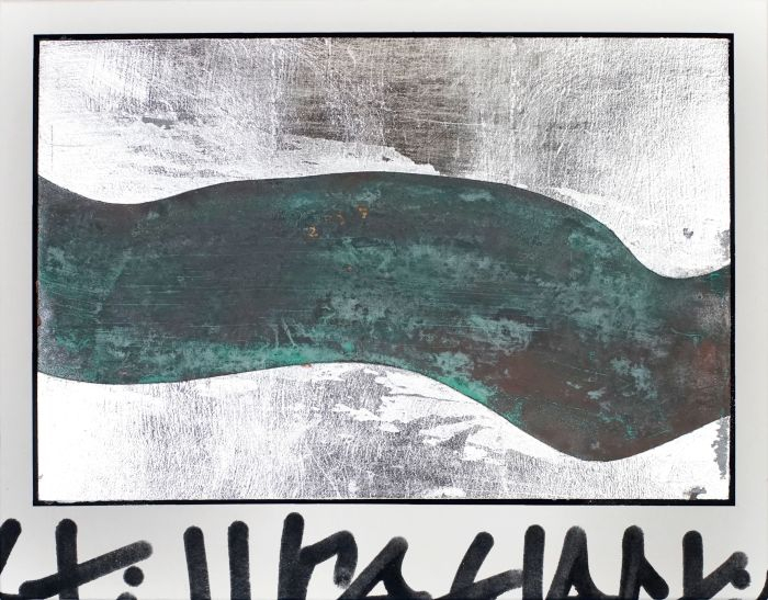 「flowing day#1」 S20号 顔料、膠、銀箔、和紙 2025