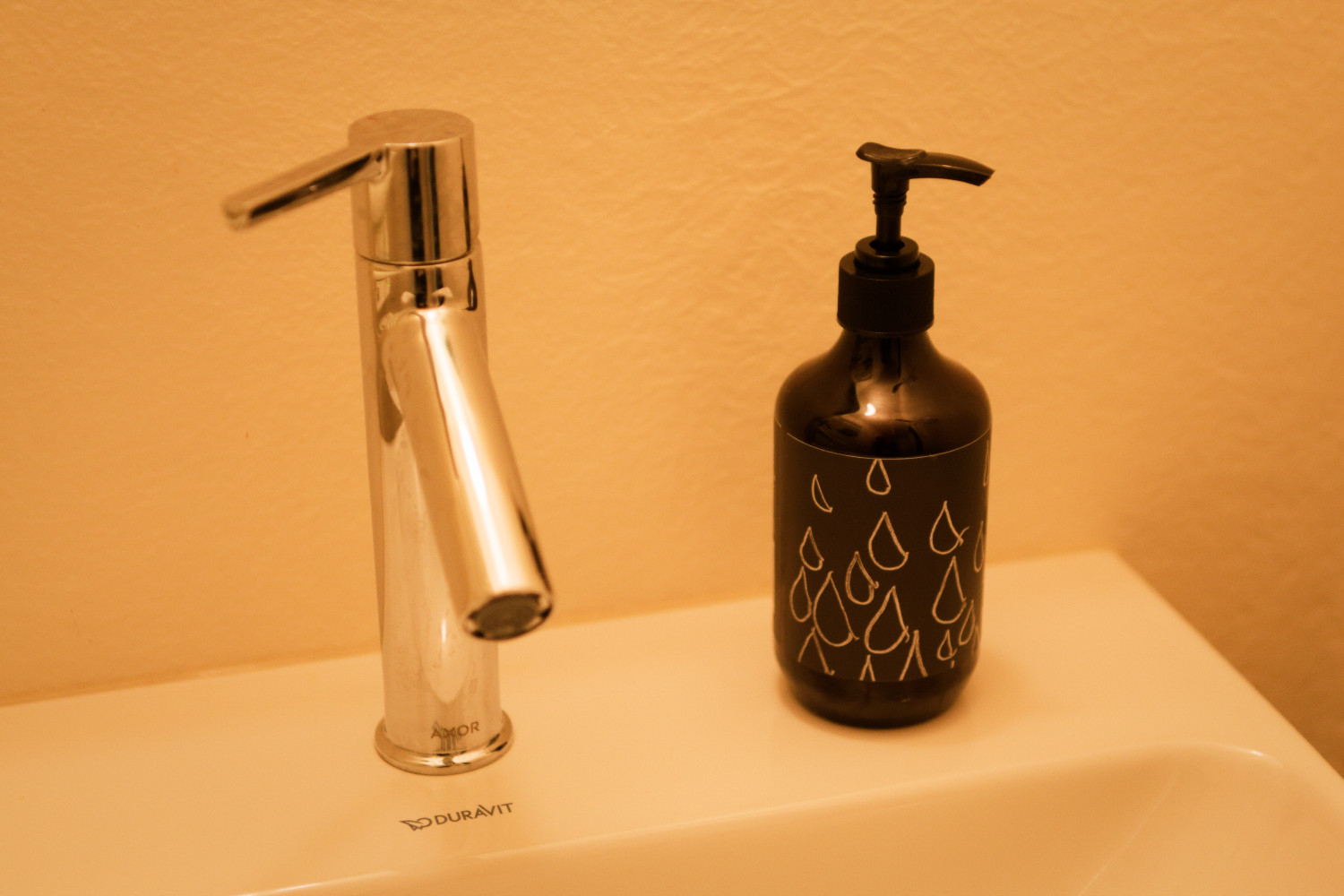 松林誠さんのリトグラフも、weeksdaysのハンドソープのパッケージになっています。雨をモチーフにした作品で、洗面台にあると気分がいい。