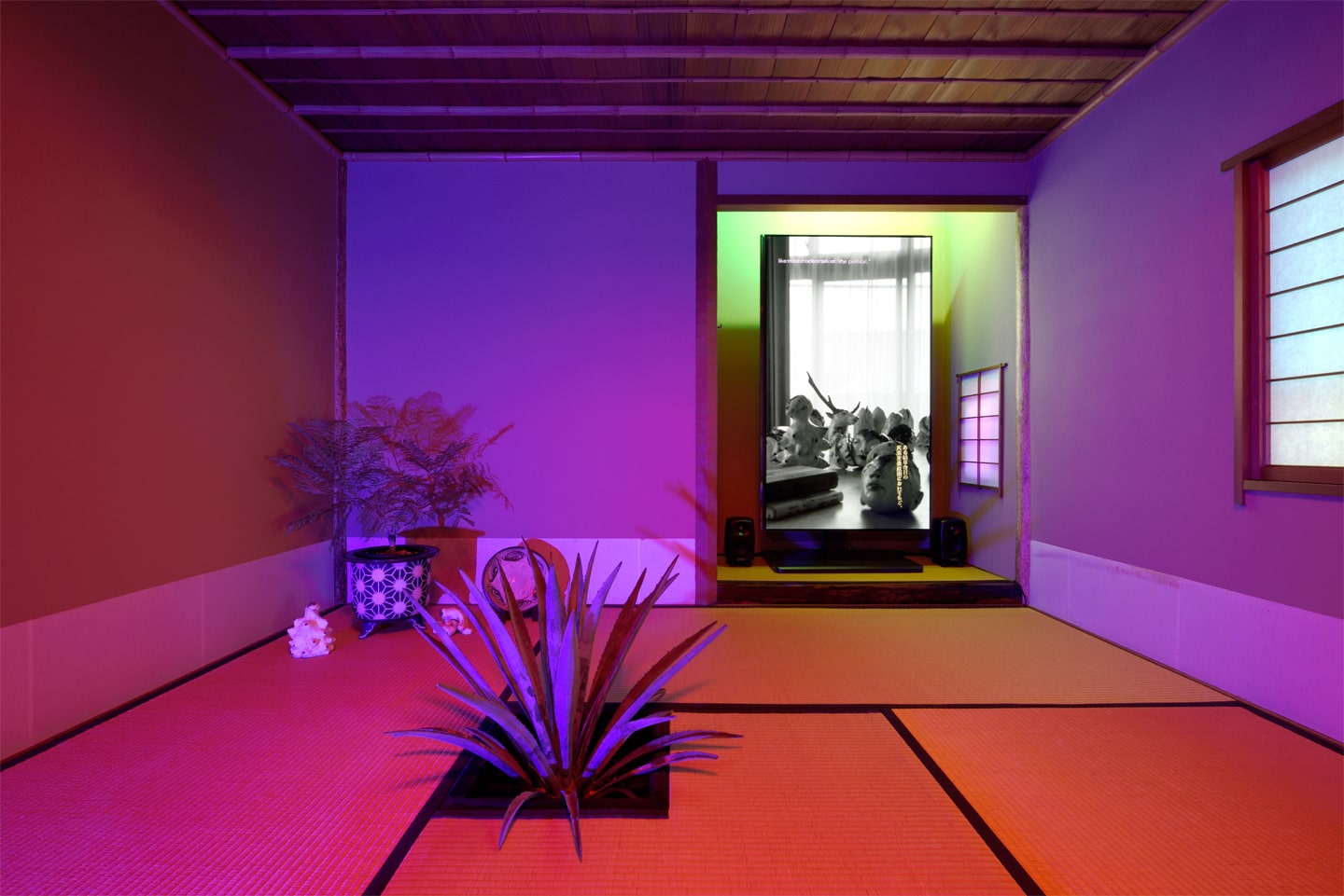 「あいち2025」の愛知県陶磁美術館の陶翠庵の庭園と茶室では《土のアゴラ》というインスタレーションを展示。瀬戸市の風土を巡る映像作品などが展示される ©︎国際芸術祭愛知組織委員会 Photo:ToLoLo studio