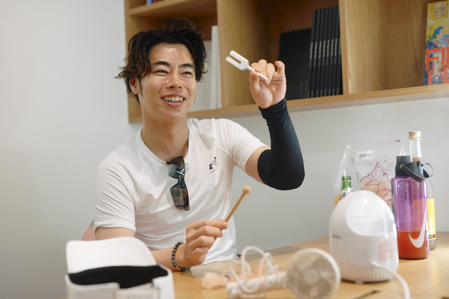 KOTARO NUKAGAでの取材中、ドラマ好きでもある川井さんが尊敬する「女優・藤原紀香」を意識した服装に着替えた場面も