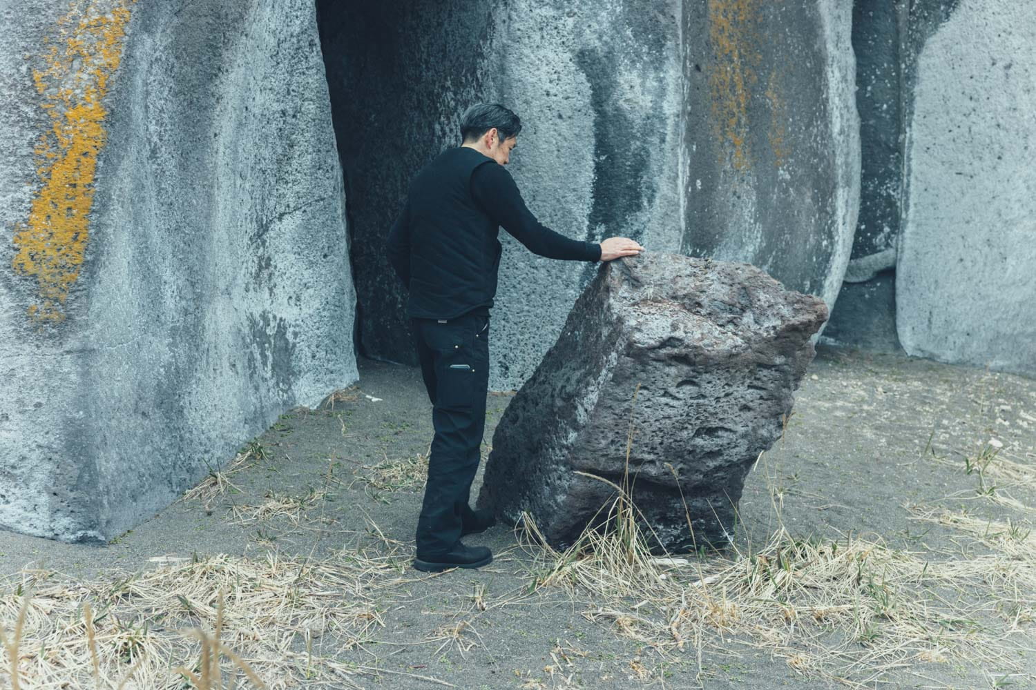 断崖には「アフンルパル」と呼ばれる、奥行き3、4mほどの横穴もあります。アイヌ語で「あの世への入り口」という意味で、近寄ってはいけない場所とされてきたそうです。自分がアフンルパルを知って考えたのは、「洞窟の暗闇に、人は何を想像するのか」ということ。そこから〈WORMHOLE〉という作品シリーズが生まれました。