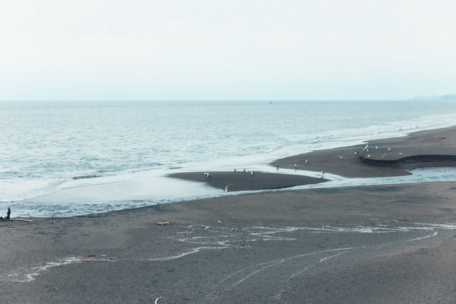 普段制作をしているアトリエは、白老町内陸の「飛生」という小さな集落にあるのですが、そこからこの海岸までは車で15分ほど。表の道路はしょっちゅう車で通っていたのに、ちょっと入っただけでこんな風景が広がっていることを、まったく知らなかったんですよね。