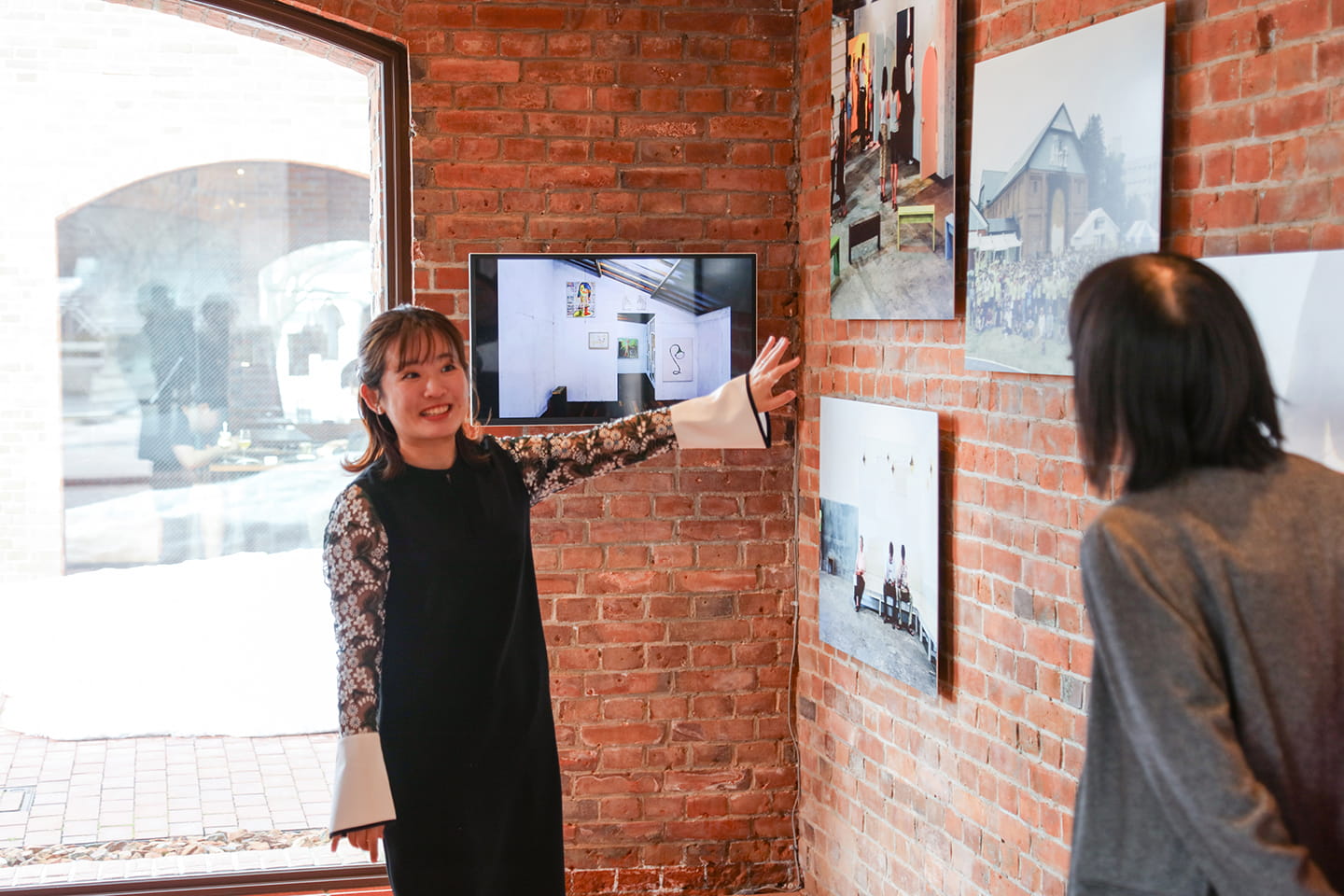 くどうさんは弘前れんが倉庫美術館のアシスタント・キュレーターの案内のもと館内を回った