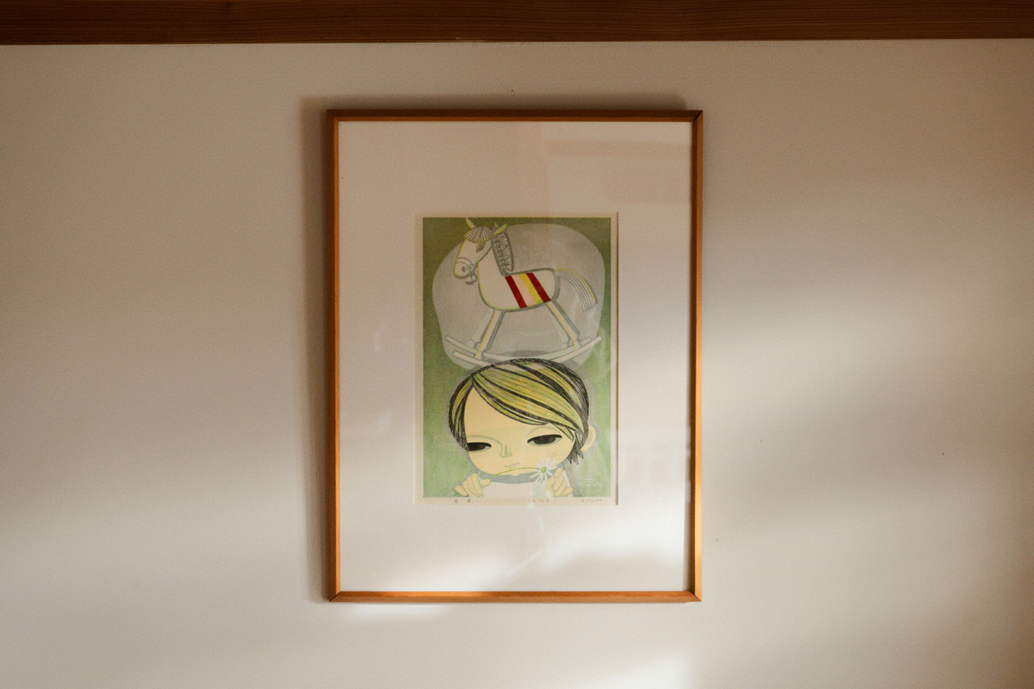 お仕事でつながった作家さんで言うと、丹野杏香さんの作品も大切に飾っています。書籍の表紙を依頼したことをきっかけに、購入しました。切り絵っぽいイラストだけど、日本的すぎないところに惹かれます。